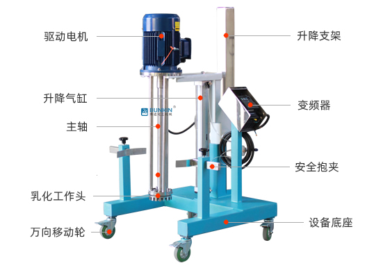 2、乳化機固定在氣動升降支架上,移動方便,操作簡單。