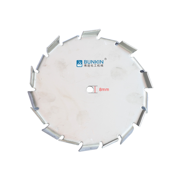 分散盤是配套于高速分散機(jī)的配件,連接于高速分散機(jī)主軸。分散機(jī)主軸高速運(yùn)轉(zhuǎn)時(shí),分散盤上下方呈現(xiàn)旋轉(zhuǎn)狀態(tài),同時(shí)會(huì)在邊緣2.5-5mm處形成湍流區(qū)。分散盤上下鋸齒對涂料、油漆、干粉、固—液等物料進(jìn)行高速的剪切、撞擊、粉碎、分散,以便達(dá)到迅速混合、溶解、分散、細(xì)化的狀態(tài)。