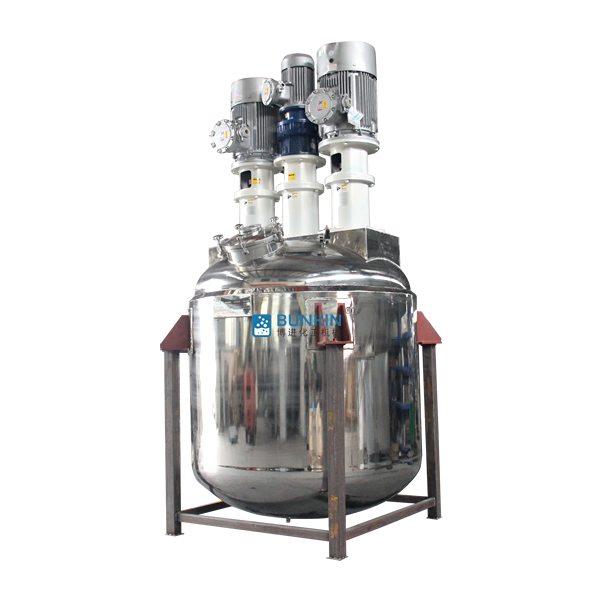 三軸多功能反應(yīng)釜集低速?gòu)?qiáng)力攪拌和高速分散多功能于一體,對(duì)中高粘度物料具有很好的適應(yīng)性。由于攪拌,分散可同時(shí)進(jìn)行,能獲得理想效果。該機(jī)適用于各種物料的攪拌,溶解分散,操作簡(jiǎn)單,適應(yīng)性強(qiáng),是理想的攪拌,分散等多功能設(shè)備。