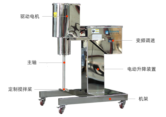 設(shè)備帶有全不銹鋼電動升降機構(gòu),能夠快速升降和固定;槳葉采用內(nèi)六角螺栓與主軸固定,能夠方便快速拆卸更換,清洗容易;帶有夾桶裝置,可以快速將攪拌桶固定,防止桶在工作中發(fā)生位移造成安全事故。
